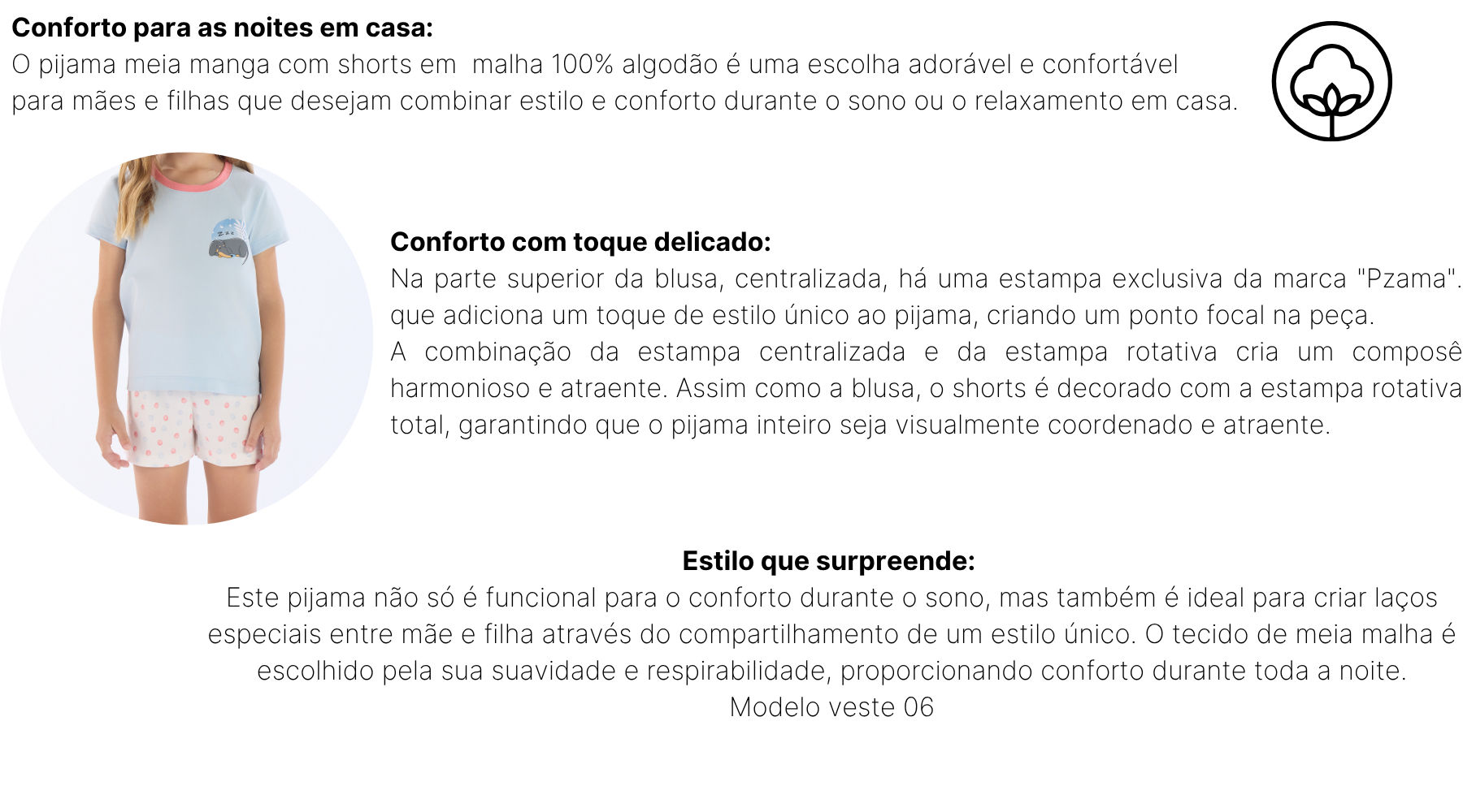 Início KIDS PIJAMA MEIA MANGA EM MEIA MALHA COM SHORTS EM MALHA ROTATIVA FEMININO