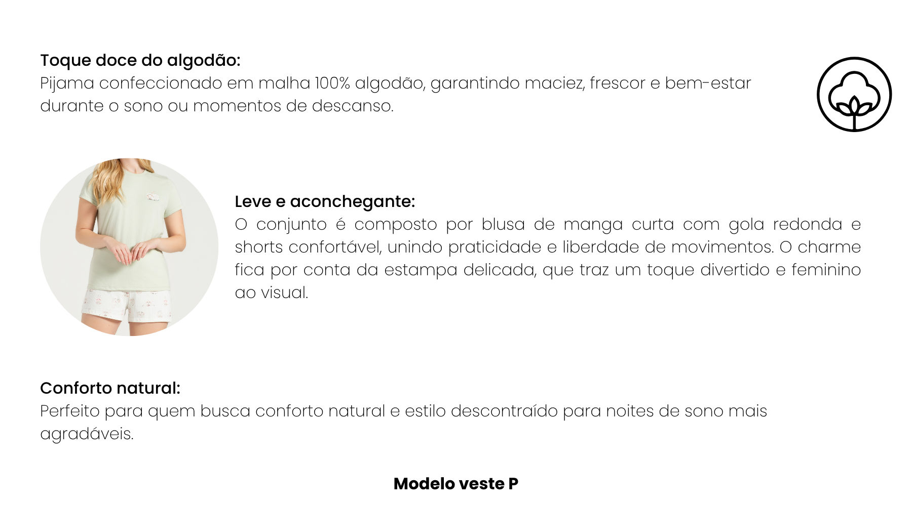 PIJAMA MEIA MANGA COM SHORTS EM MEIA MALHA FEMININO