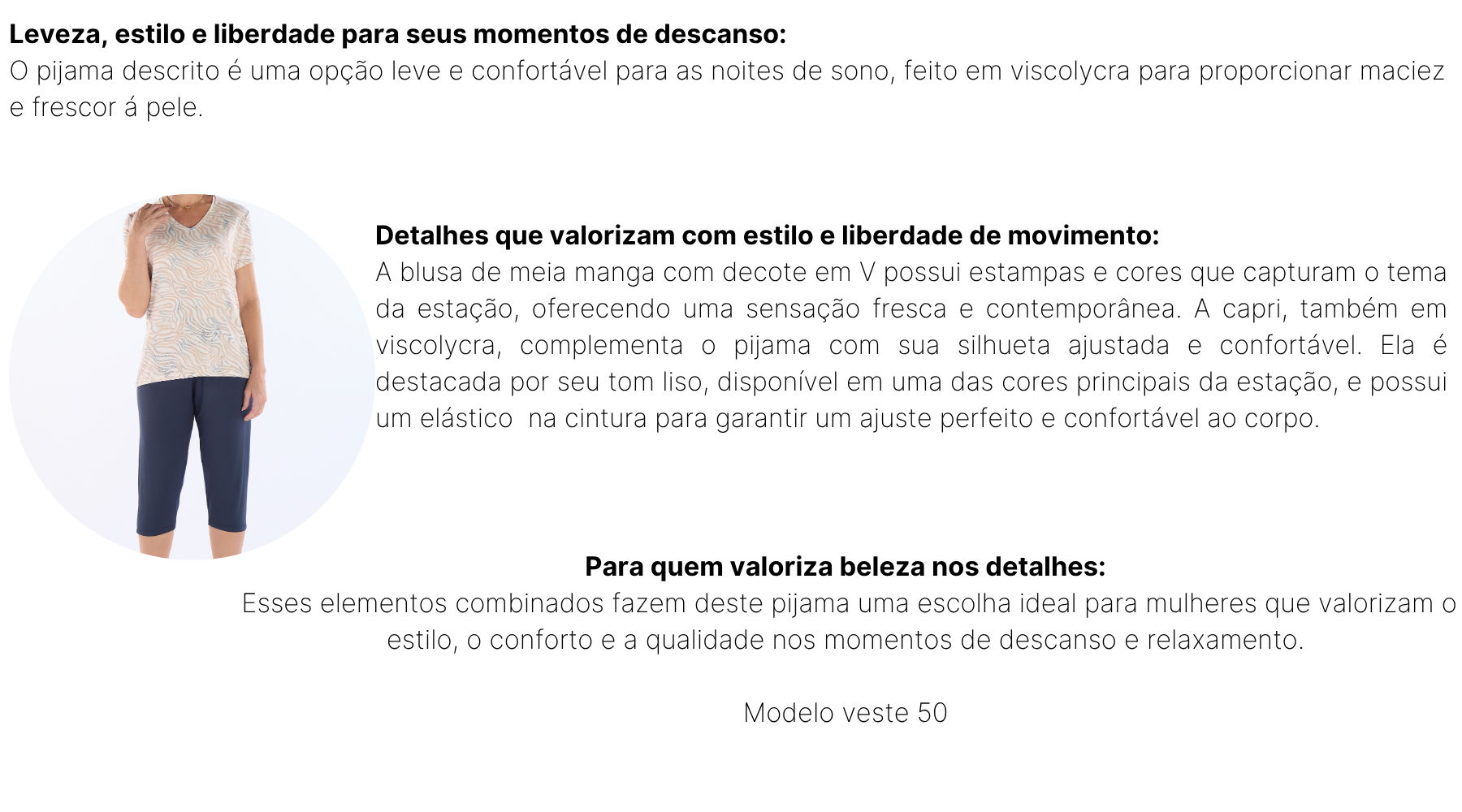 PIJAMA MEIA MANGA EM VISCOLYCRA ROTATIVA COM CAPRI EM VISCOLYCRA FEMININO