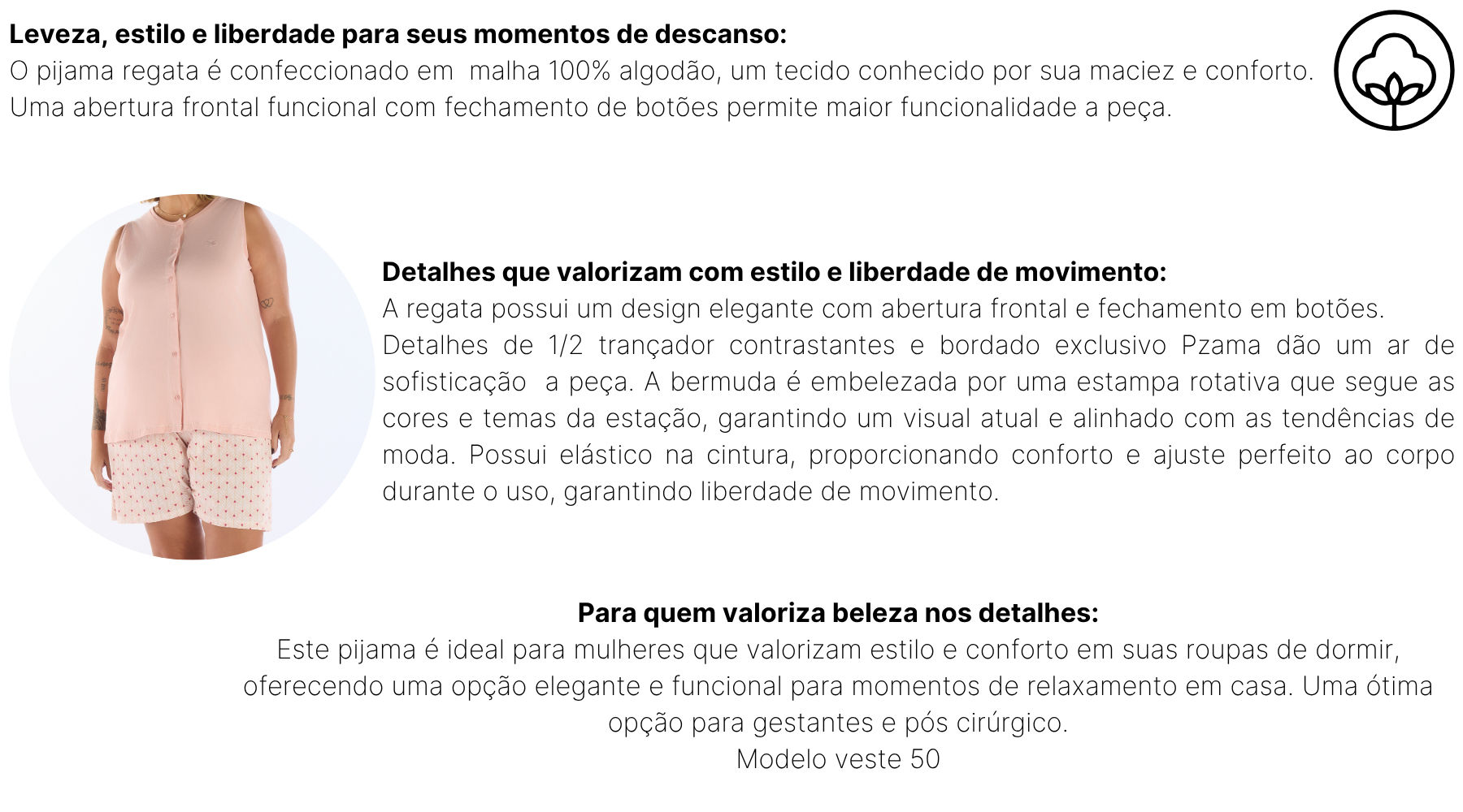 Início PLUS SIZE PIJAMA REGATA ABERTURA FRONTAL EM MEIA MALHA COM BERMUDA EM MALHA ROTATIVA FEMININO