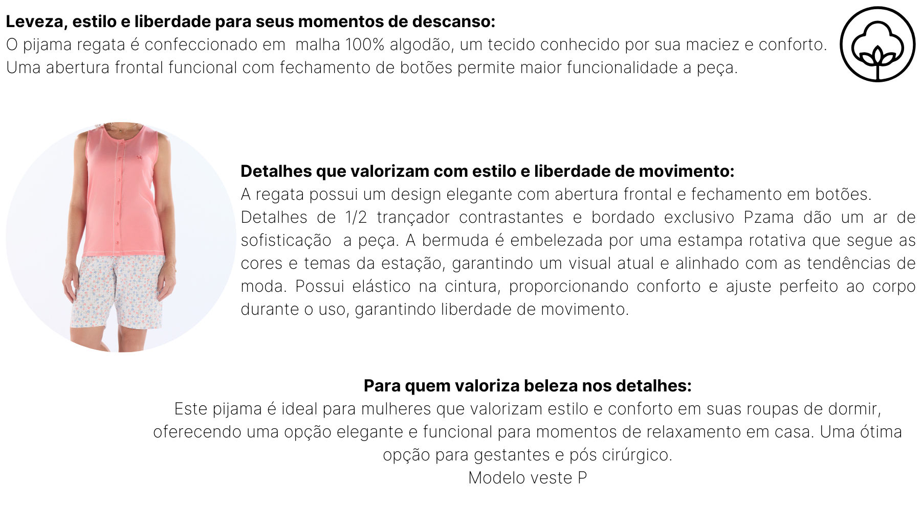 PIJAMA REGATA ABERTURA FRONTAL EM MEIA MALHA COM BERMUDA EM MALHA ROTATIVA FEMININO