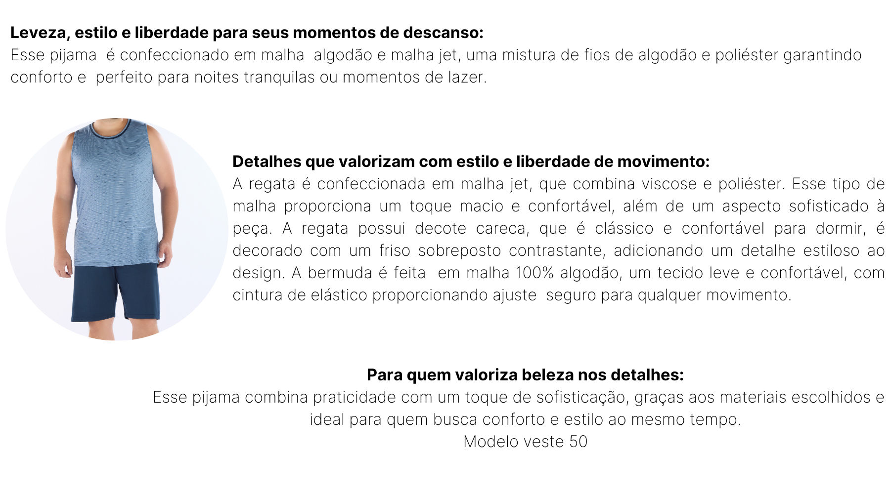 PIJAMA REGATA EM MALHA JET COM BERMUDA EM MEIA MALHA MASCULINO