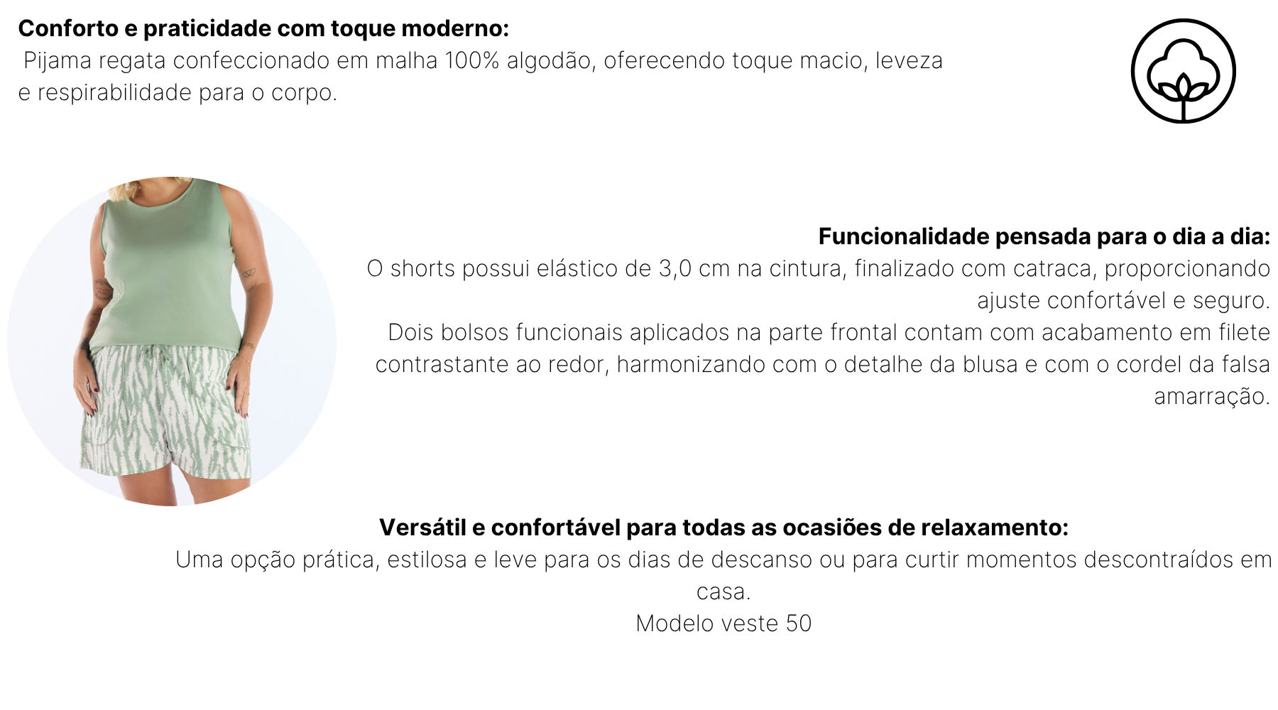 Início LINHAS PIJAMA REGATA EM MEIA MALHA COM SHORTS EM MALHA ROTATIVA FEMININO