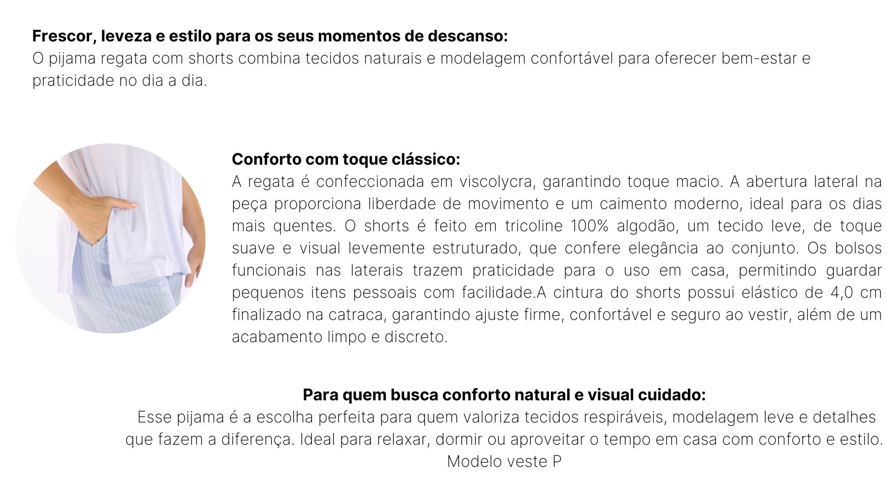 Início LINHAS PIJAMA REGATA EM VISCOLYCRA COM SHORTS EM TRICOLINE PANA FEMININO