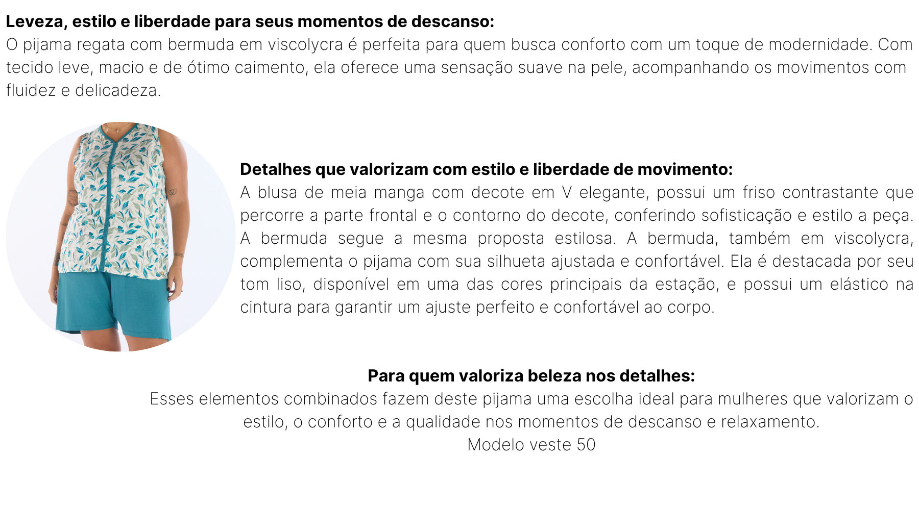 Início PLUS SIZE PIJAMA REGATA EM VISCOLYCRA ROTATIVA COM BERMUDA EM VISCOLYCRA FEMININO