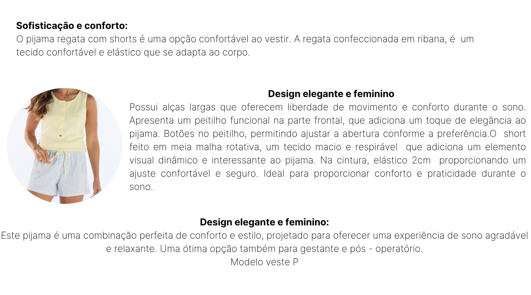 Início LINHAS PIJAMA REGATA PEITILHO EM RIBANA 1X1 COM SHORTS EM MALHA ROTATIVA FEMININO